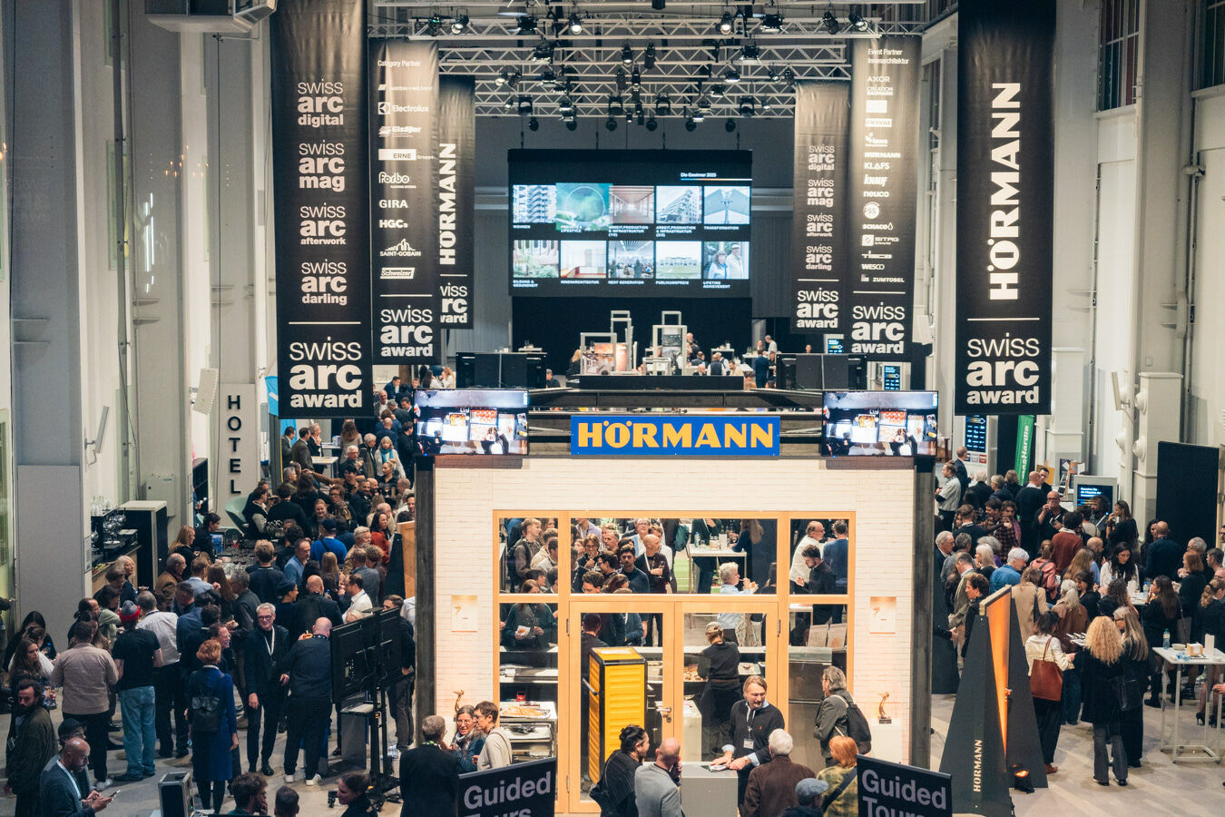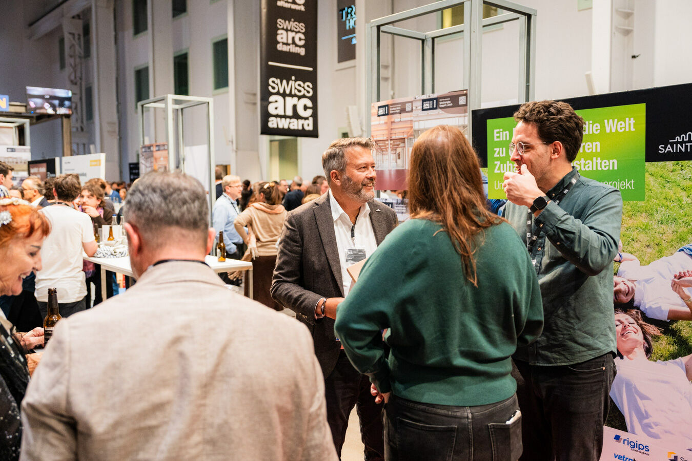 La soirée s'est achevée dans les halls 36 et 37 du Trafo, où les participants se sont retrouvés pour discuter de l'avenir de la construction en Suisse.